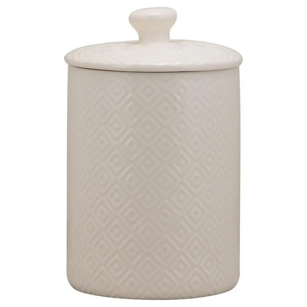 This posh set of 3 ceramic cannisters are embossed with a diamond texture, and feature knobbed lids. Perfect for storing your countertop staples like flour, sugar, coffee or tea, while adding a stylish touch of décor to your kitchen! Set includes 1 x 24 oz small canister 3.75"L x 3.75"W x 5.5"H; 1 x 38 oz medium canister 4.5"L x 4.5"W x 6.25"H; 1 x 108 oz large canister 5.5"L x 5.5"W x 7.5"H.