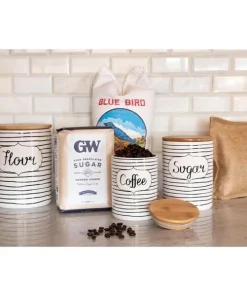 10 Strawberry Street Everyday Coffee, Sugar, Flour 3 Piece Canister Set, White/Black