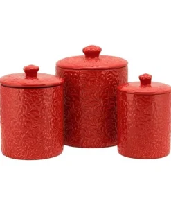 Decorative and functional, this stylish 3 piece canister set features an embossed texture, and a ceramic lid with a gasket seal, making them perfect for storing your counter top staples like flour, sugar, coffee or tea. Set includes:
