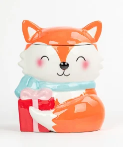 Celebrate the season with this charming ceramic canister, featuring a woodland critter cheerfully holding a present. Perfect for storing cookies, candies, or simply displaying as part of your holiday décor, it brings a cozy forest feel to any festive setting.
