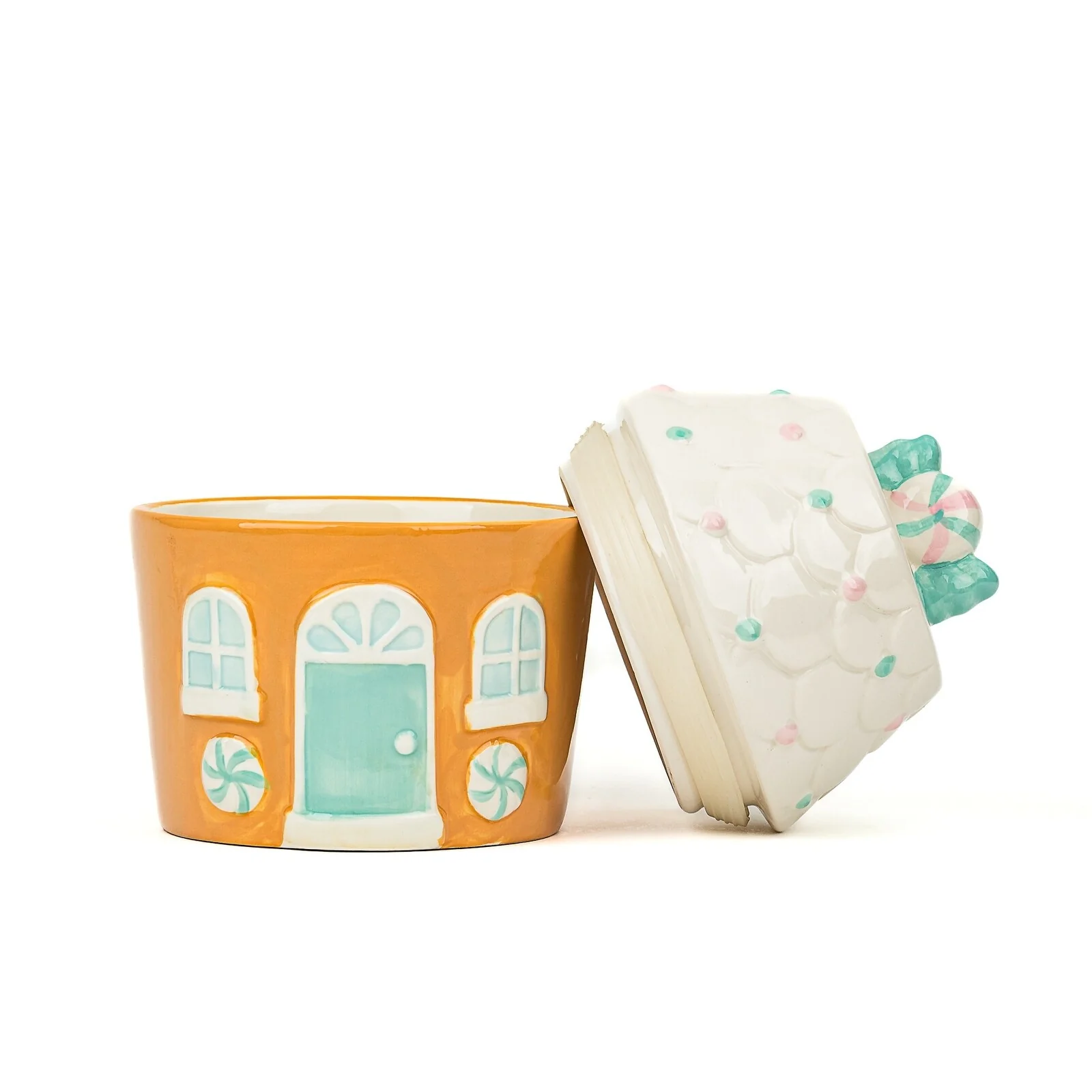 Bring a touch of holiday magic to your home with this delightful Gingerbread House Cookie Jar. Adorned with colorful candy details and festive hues, it serves as both a whimsical centerpiece and a practical spot for storing your favorite seasonal treats.t
