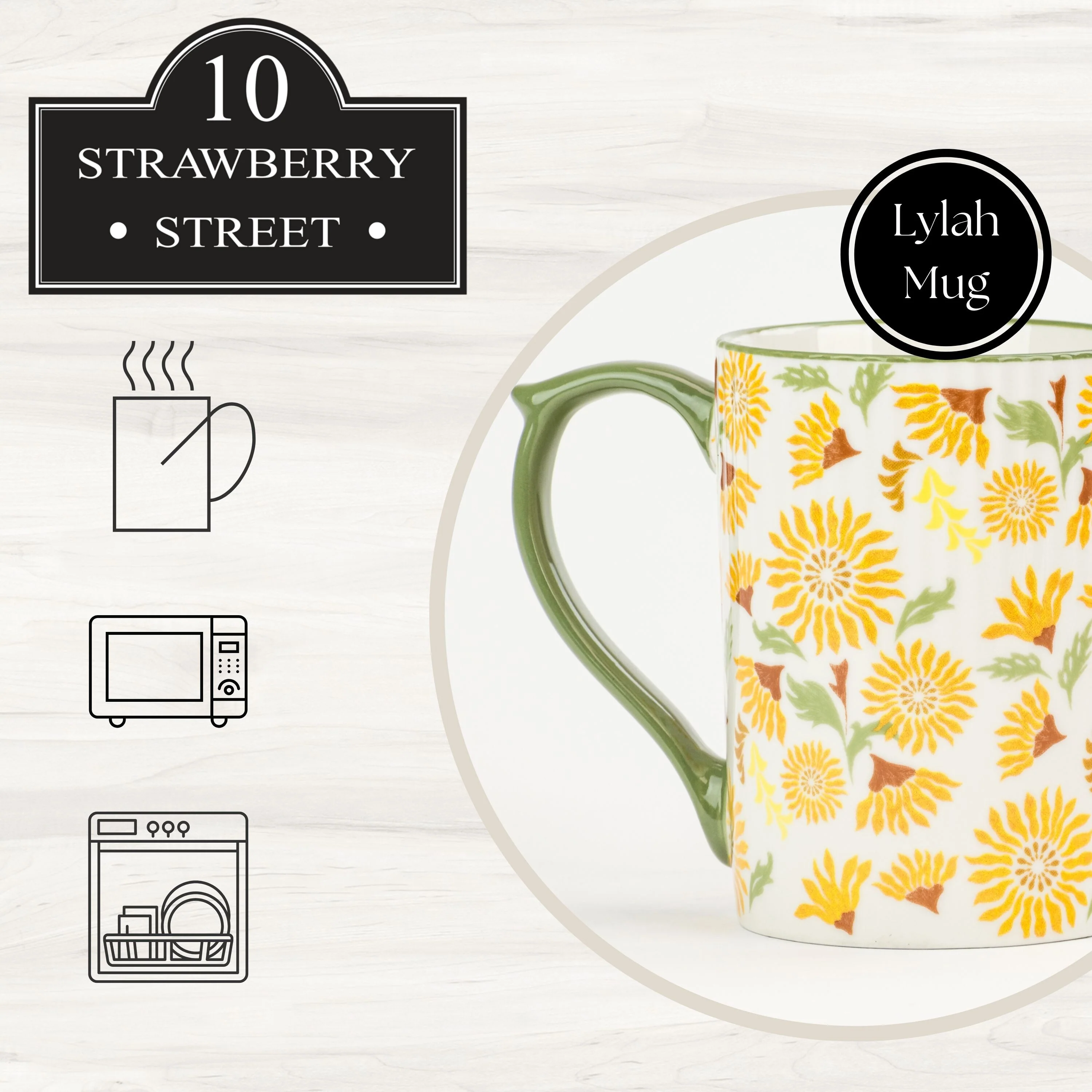 Bold color, vibrant patterns, and handcrafted details define the Lylah Collection. Each mug features a ridged texture and a gracefully scrolled handle, hand-painted in a coordinating hue and shaped for a comfortable hold. Striking and tactile, they’re perfect for gifting—or for elevating your own daily ritual.t