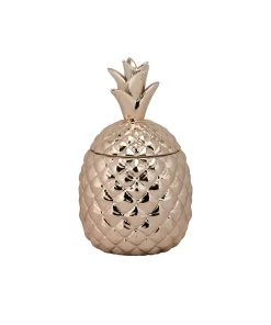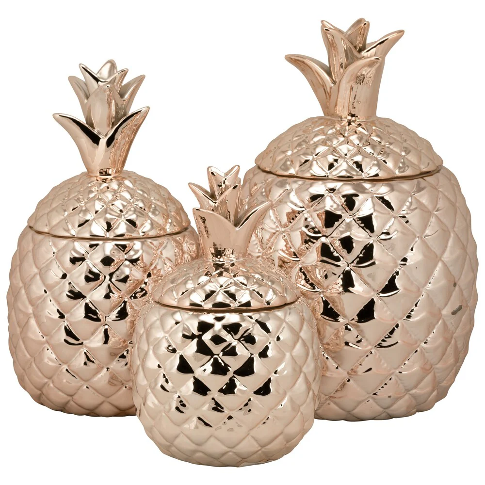 Bring a tropical touch to your dining room buffet with this pineapple canister. The ceramic construction and a warm rose goldtone finish ensures enduring beauty and the medium size is ideal for small kitchen placement.