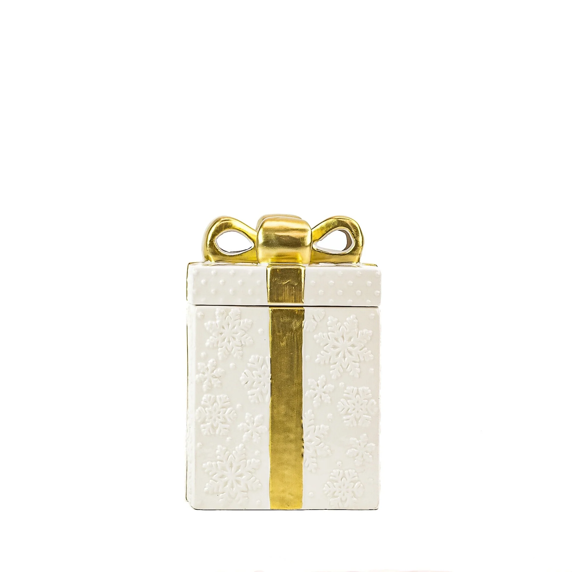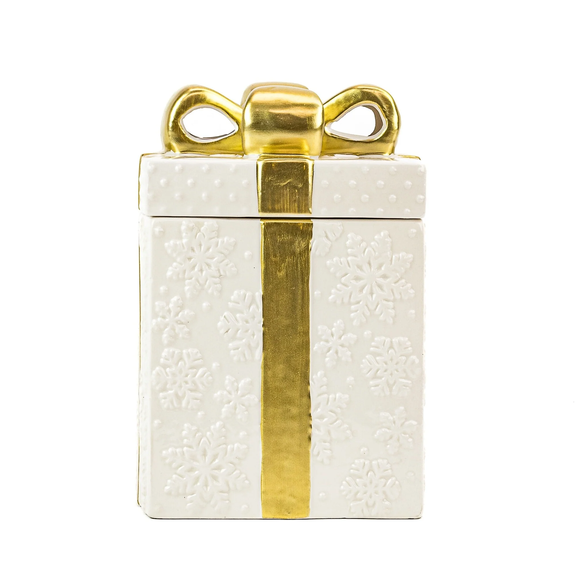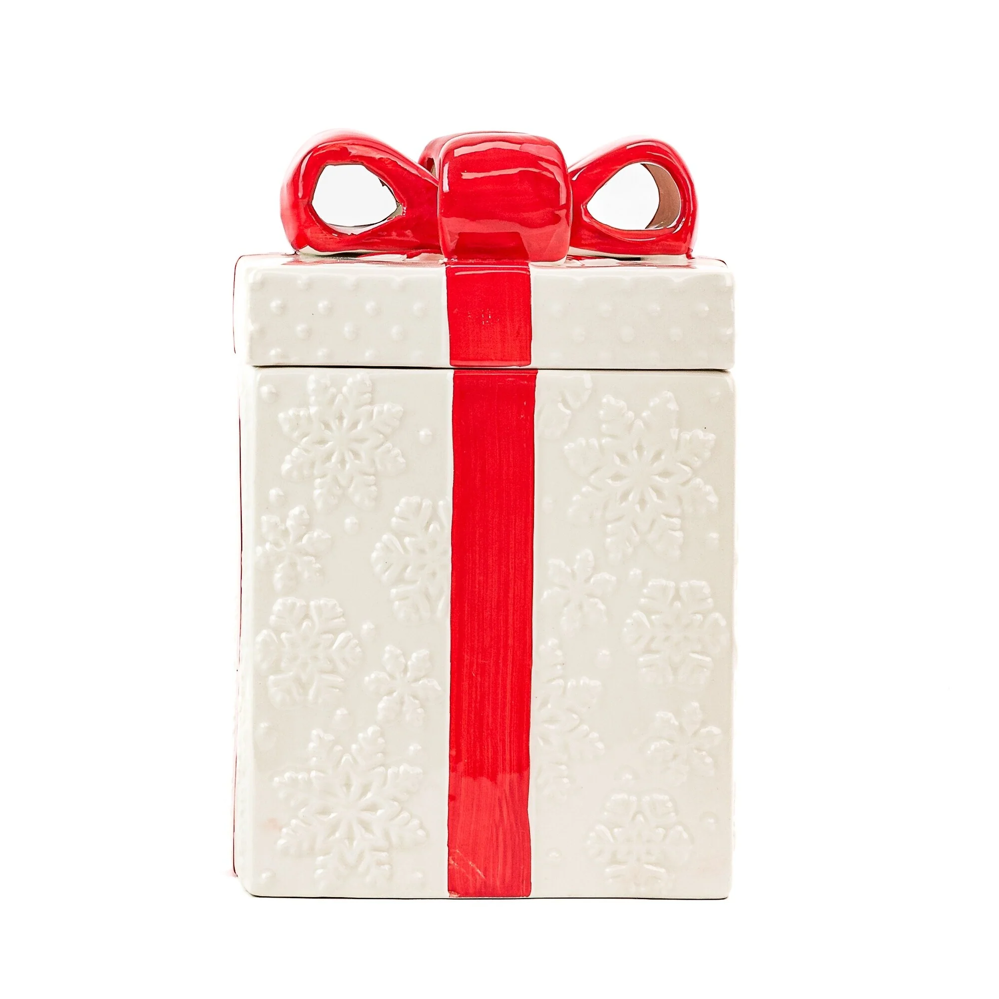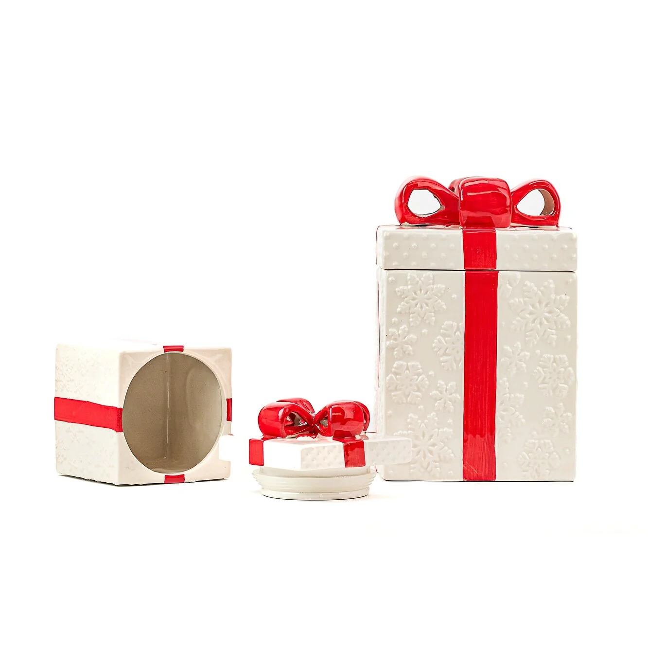 - Set of Two Jars; Includes one small and one large gift box-shaped cookie jar for versatile storage or display.t