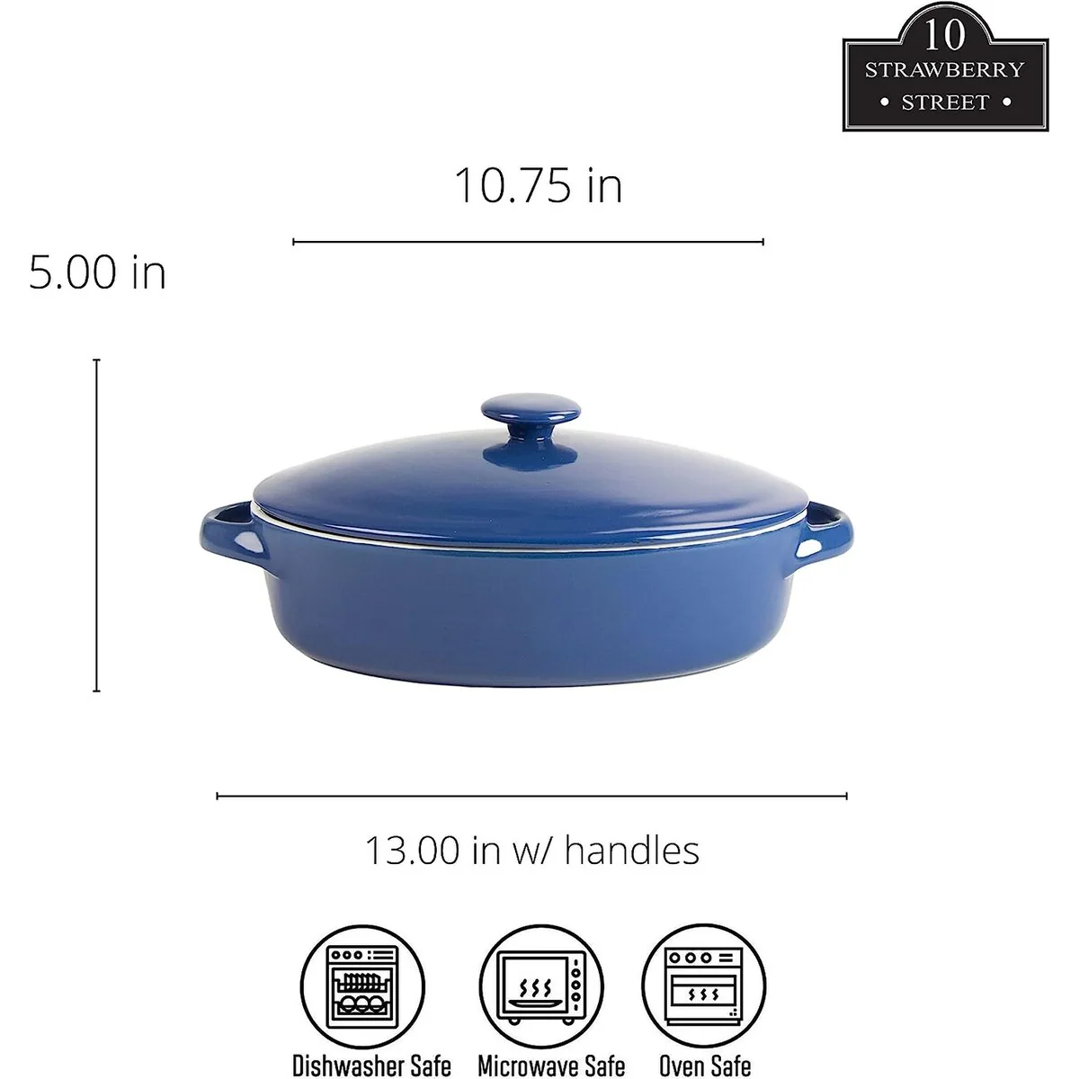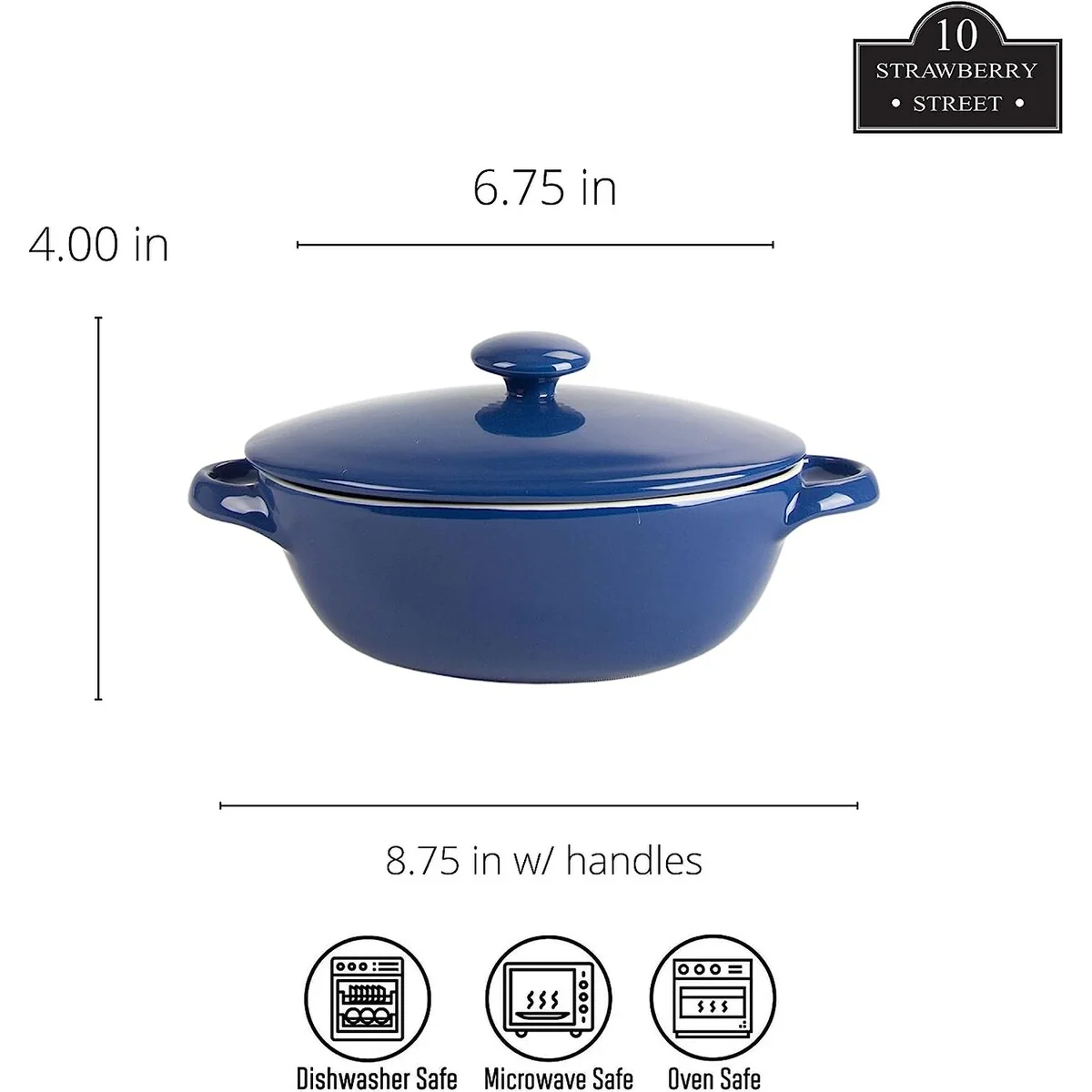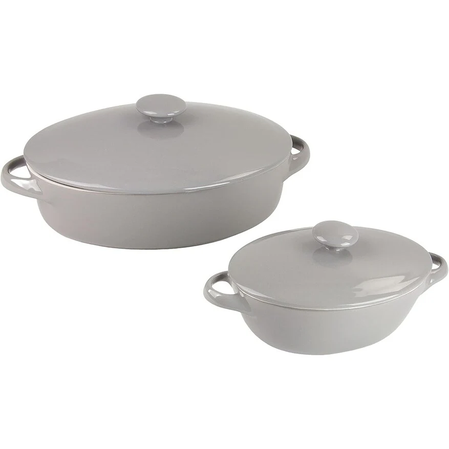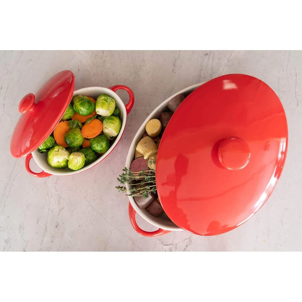 Prep, cook, serve, and store all in one container! This set of 2 covered casserole dishes is made of durable stoneware that is microwave, oven, and dishwasher safe and will not absorb odors or flavors, making them a must-have for every kitchen. Featuring a two-tone color scheme and knobbed lids, you’ll love baking your favorite dishes and serving your guests with this great bakeware set from 10 Strawberry Street.