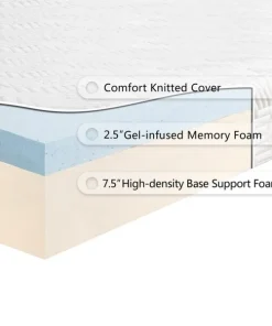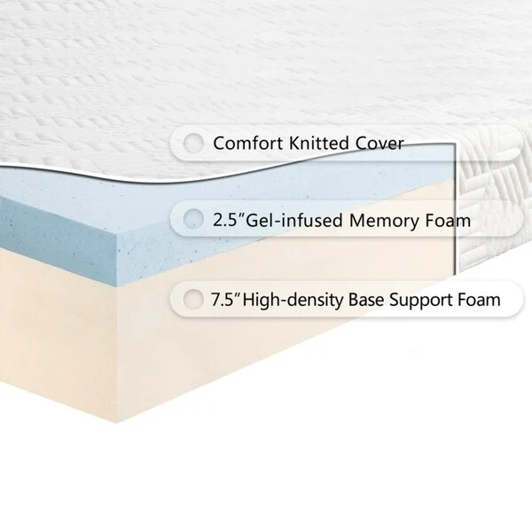 - 2.5 inches Gel-infused Memory Foam, 7.5 inches High-density Base Support Foam