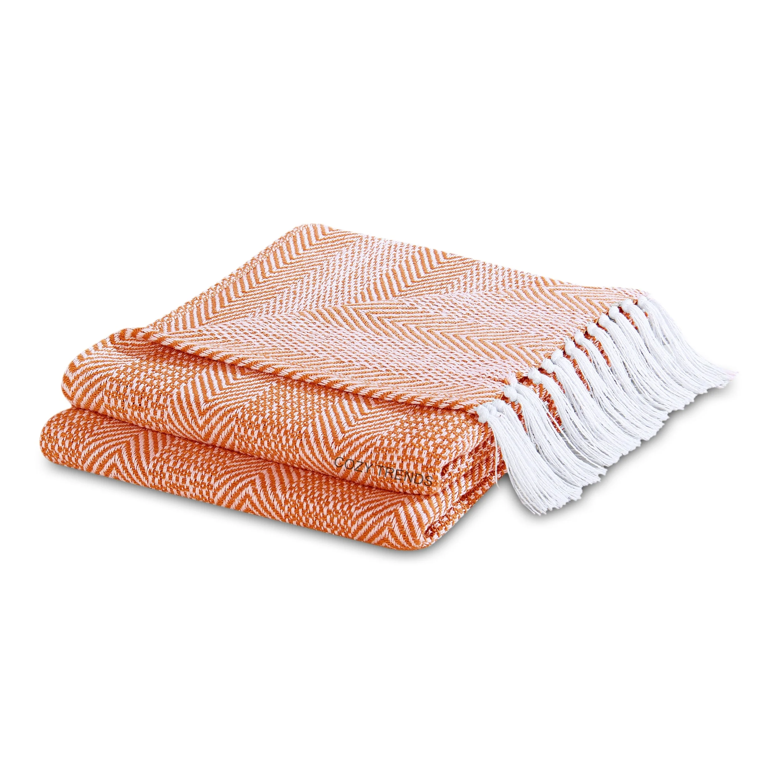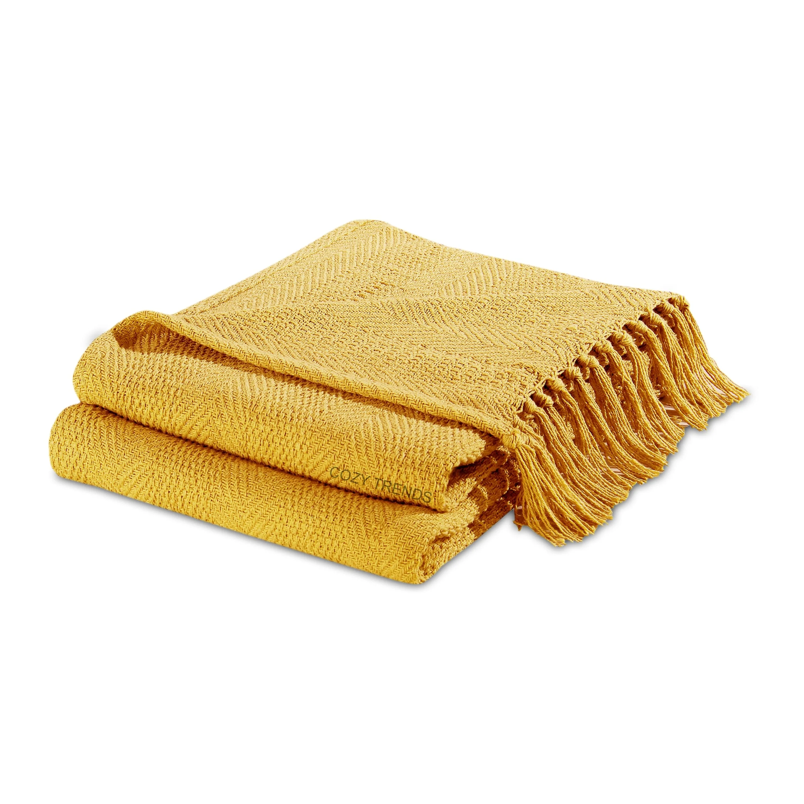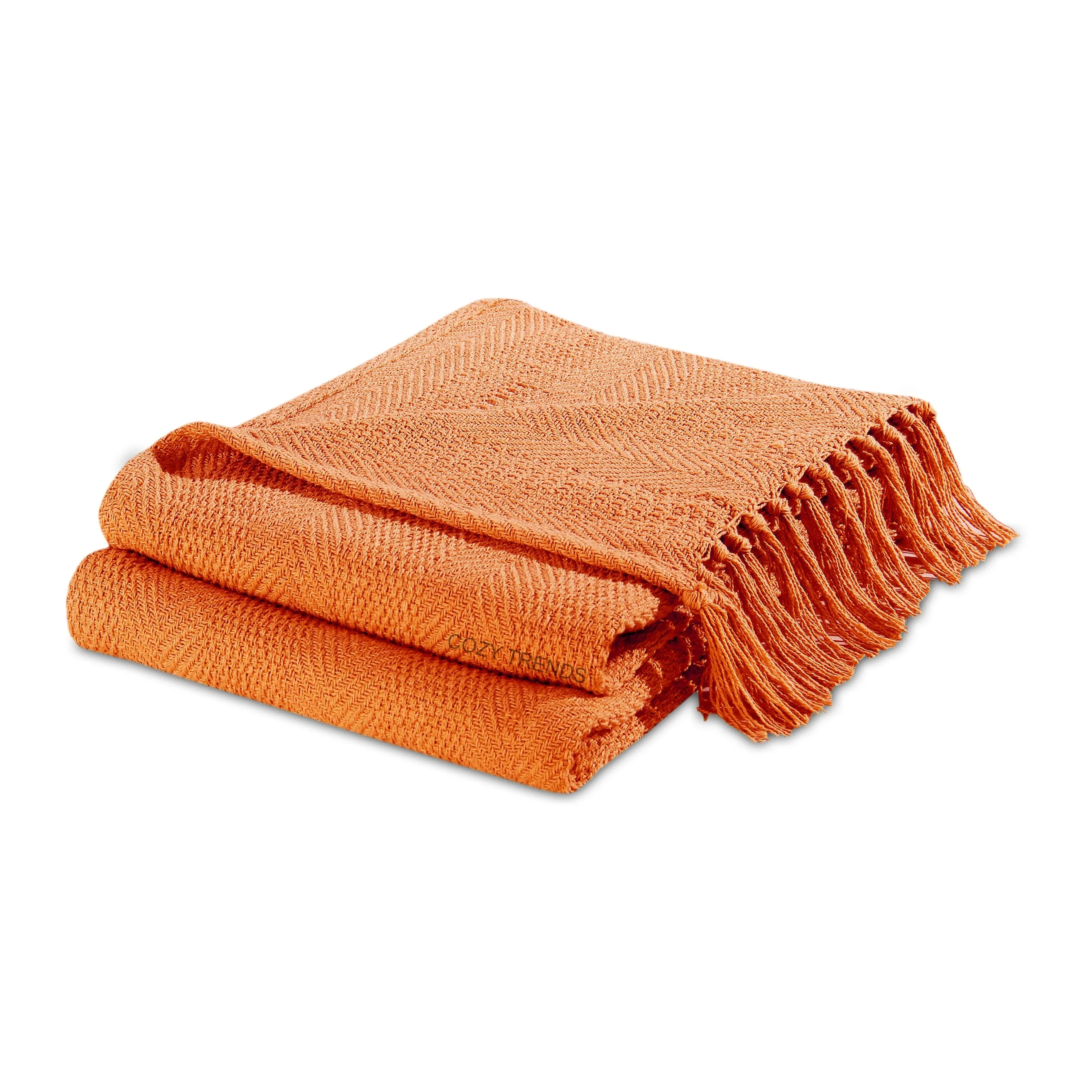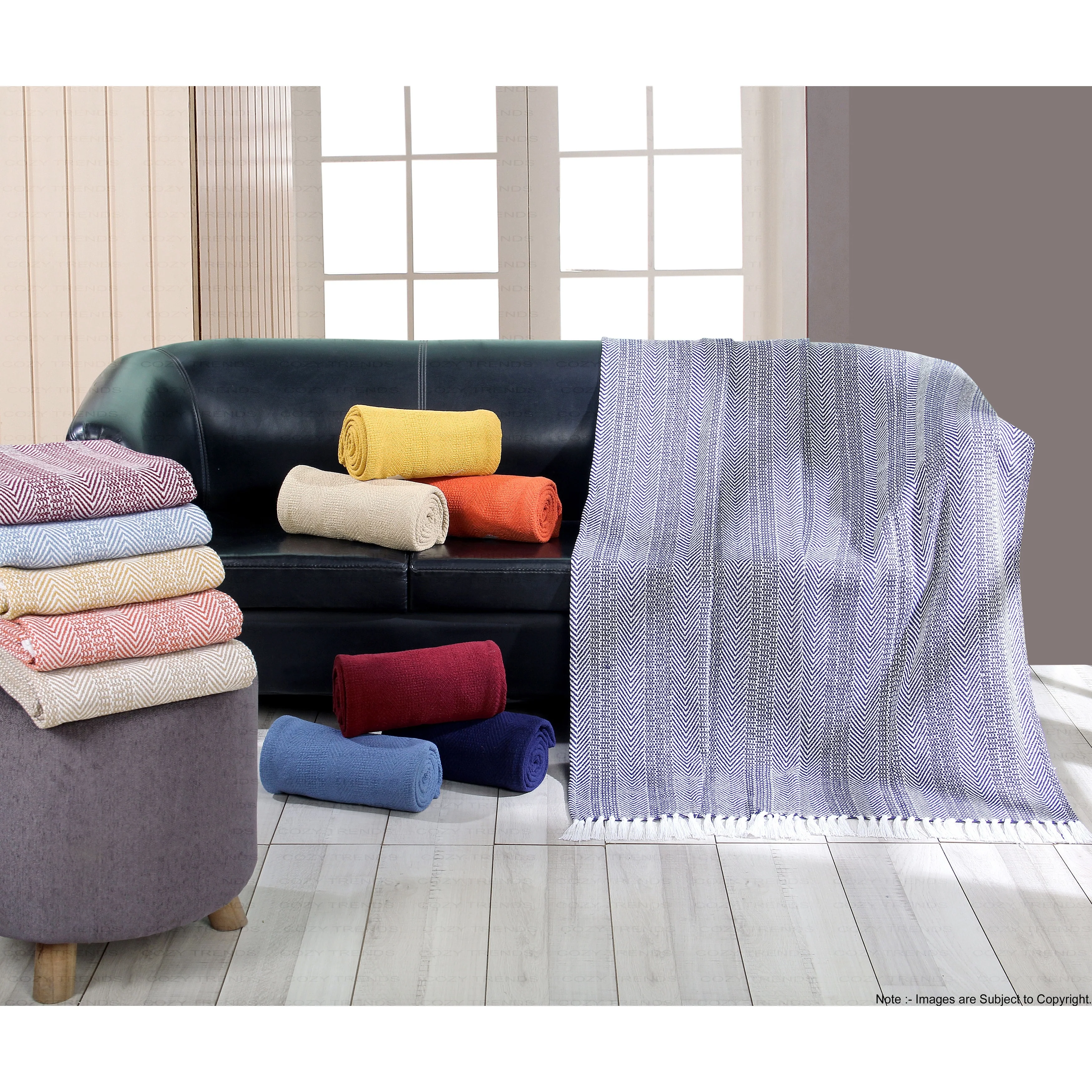 Get the perfect blend of comfort, style and durability with our 100% Cotton All Season Throw Blankets. Made with ringspun pure cotton, our blankets are soft, strong and long-lasting. The herringbone pattern adds an old-fashioned charm while the decorative fringe provides a modern twist. Measuring 50 x 60 inches, this set of 2 throws is perfect to add a splash of color to any room in your home. With luxurious looks and warm feel, these throws are perfect for snuggling up on a chilly night.