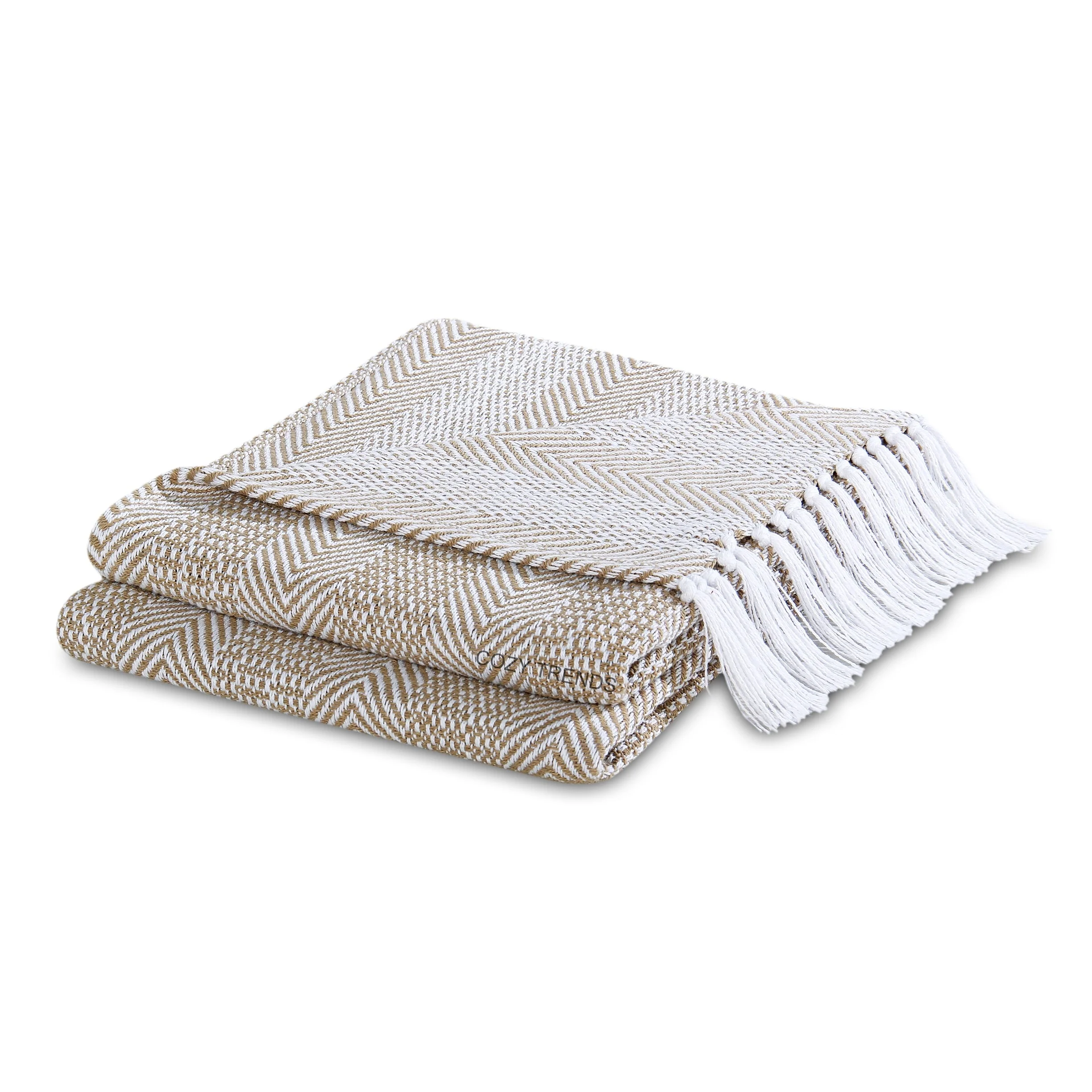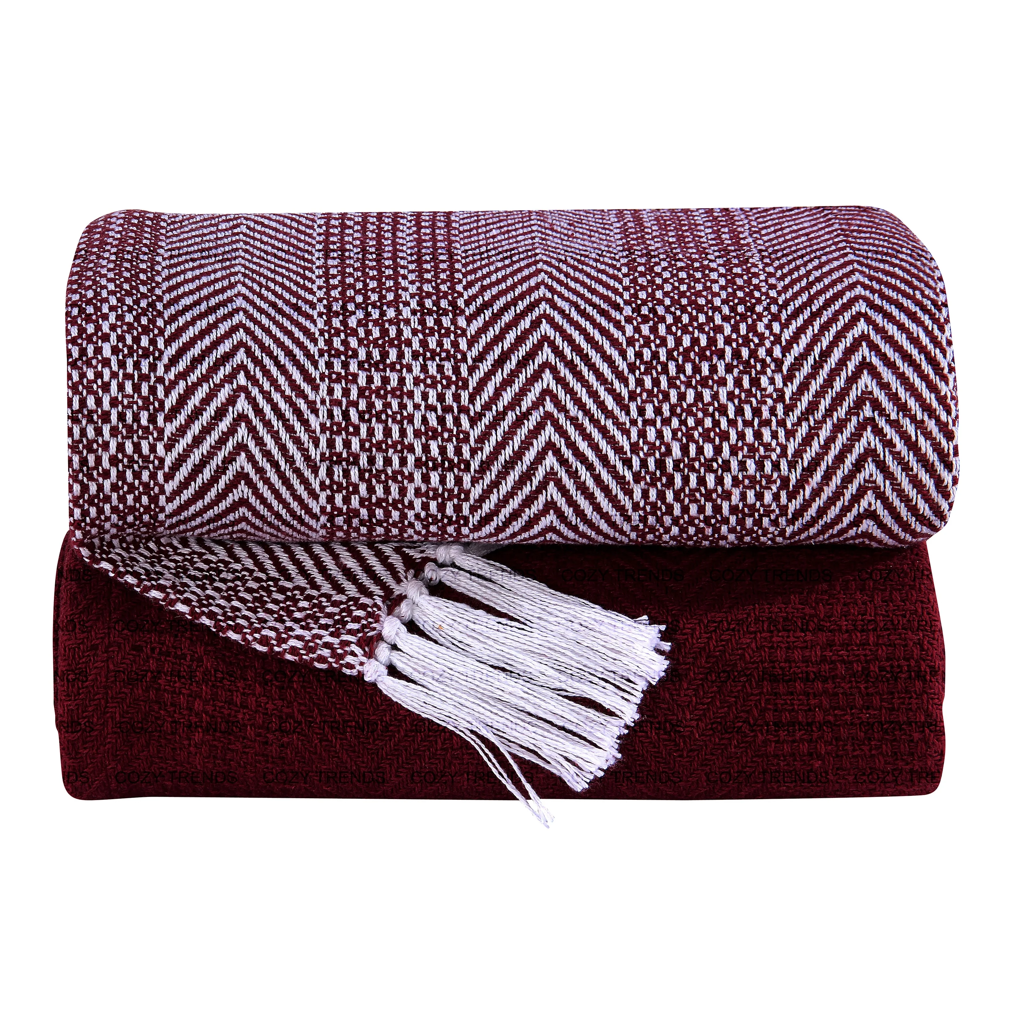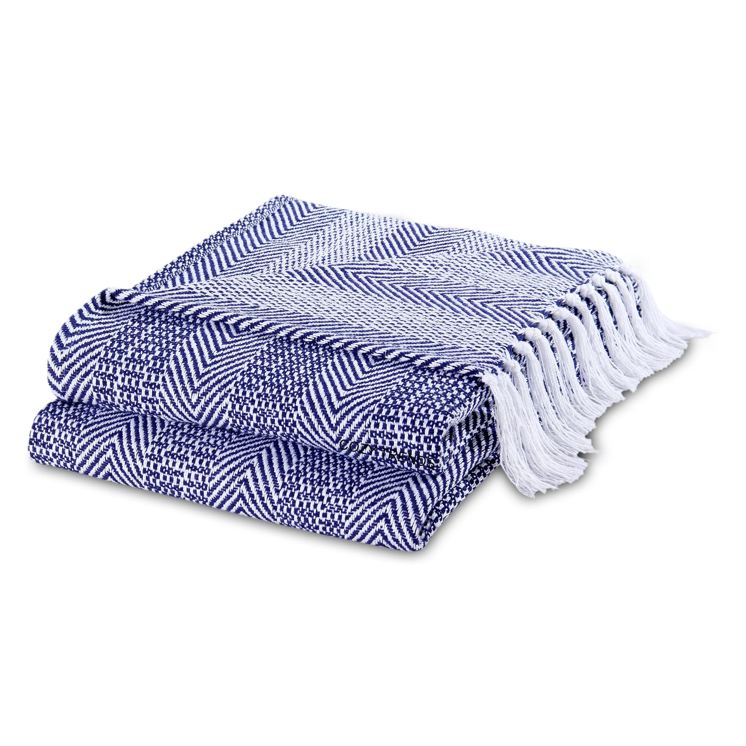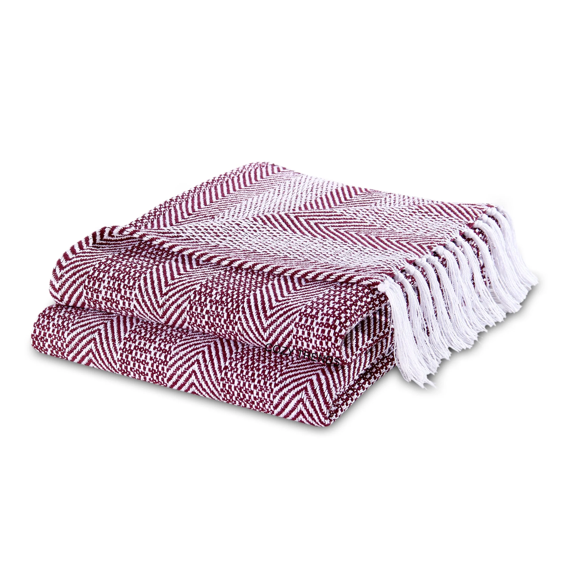 Get the perfect blend of comfort, style and durability with our 100% Cotton All Season Throw Blankets. Made with ringspun pure cotton, our blankets are soft, strong and long-lasting. The herringbone pattern adds an old-fashioned charm while the decorative fringe provides a modern twist. Measuring 50 x 60 inches, this set of 2 throws is perfect to add a splash of color to any room in your home. With luxurious looks and warm feel, these throws are perfect for snuggling up on a chilly night.