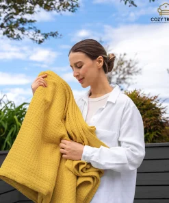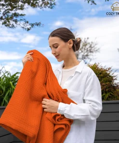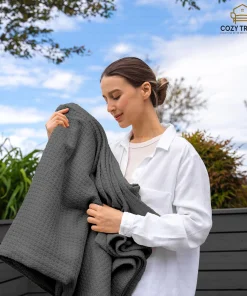 - Made from premium quality 100% cotton, our thermal bed blanket offers exceptional breathability, ensuring optimal air circulation for a refreshing night’s sleep. Its basket weave pattern not only adds a touch of visual appeal but also enhances the blanket’s ability to trap heat, providing warmth during colder seasons without feeling too heavy or suffocating.
