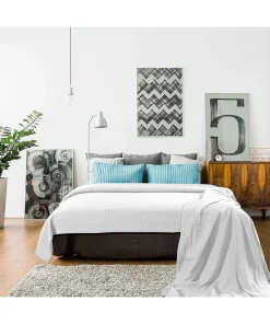100% Cotton Basket Weave Thermal Bed Blanket Breathable Soft Layering All Season Medium Weight