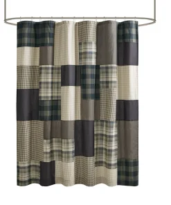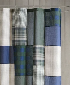 The 72×72 inch casual cottage style shower curtain adds a touch of warmth and elegance to your bathroom space with its classic checkered solid colour patchwork pattern.100% cotton texture is soft and wear-resistant, skin-friendly and easy to maintain. Thanks to its machine washable nature, daily care becomes easy and simple, always keep clean as new. For better waterproofing, a waterproof liner is recommended (liner sold separately). Â Â