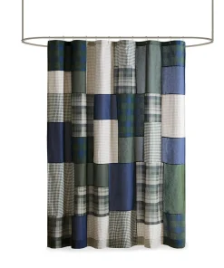 The 72×72 inch casual cottage style shower curtain adds a touch of warmth and elegance to your bathroom space with its classic checkered solid colour patchwork pattern.100% cotton texture is soft and wear-resistant, skin-friendly and easy to maintain. Thanks to its machine washable nature, daily care becomes easy and simple, always keep clean as new. For better waterproofing, a waterproof liner is recommended (liner sold separately). Â Â