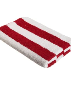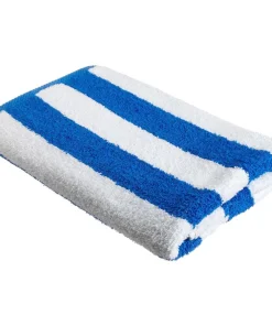In bright summery colors, but with a luxurious velour feel, these 100 percent cotton striped beach towels will be the perfect accompaniment to a day at the shore or pool. Available in red, blue or turquoise, these towels offer versatility.