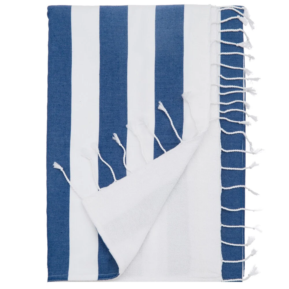 Traditionally handloomed in Denizli, Turkey, this classic Deck Beach Towel is designed with bold nautical stripes and hand-tied fringes making the perfect, two-sided, plushy and rugged beach towel.