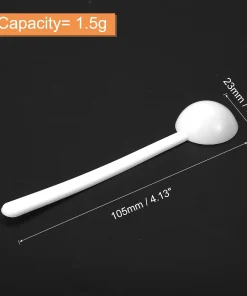 - With a capacity of 1.5g, they are great for measuring small amounts of powder or other ingredients. The scoops feature a smooth and ergonomic design, making them easy to hold and scoop, fit for precise measurement and portion control. The scoop handle is long and sturdy that providing a comfortable grip, suitable for deep bottles.