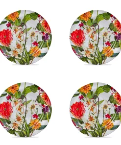 Melamine: the lightweight alternative to fine porcelain and ceramic. BPA-free, with durable organic shape and texture, this melamine dinner plate set features a fun tag exclusive design while providing the conveniences of everyday usage and indoor/outdoor entertaining. Set of 4.