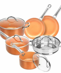 Good for cooking with induction, gas, electric, or ceramic glass stove tops. Oven safe up to 550F. You can cook without oil or butter with this cookware. Do not use cooking spray on this pan as it can cause residue buildup. Instead, use a small amount of oil or butter to lightly coat the inside surface of the pan.