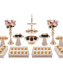 - Versatile Solution: This set comprises 11 cake stands, featuring square, round, and three-tier options, providing ample display space to cater to grand parties or dessert gatherings. Diverse sizes and shapes cater to various display requirements.