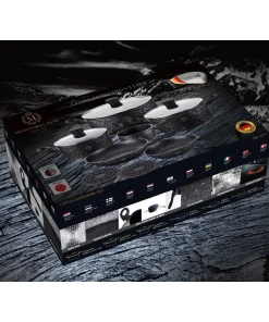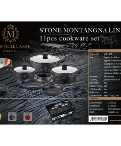 Cookware set made by Meisterklasse Exklusiv will be a perfect addition for each and every household. Set is made of aluminum and consists of 3 saucepans of different sizes together with 1 frying pan, 1 deep fry pan and 2 bakelite mats for every occasion. Perfect for all types of cooking, set has a wide variety of uses. Induction suitable Ultra non-stick perfomance Dishwasher safe Cool touch handle Energy effcient and knob Less oil needed Marble coating