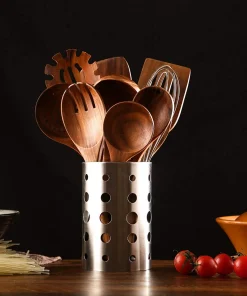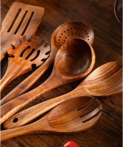 - 100% Natural Wood: Crafted from natural teak wood, these utensils showcase a beautiful wood grain and are finished with food-grade mineral plant oil. The smooth finish ensures they won’t scratch your non-stick cookware.