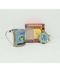 - Gift Box: This set it’s beautiful packed in a Scottish matching box. This 11 fluid ounce size is more than enough to uplift your spirit to start the day, it is recommended that it be washed by hand with mild detergent and dried with a soft cloth.Â