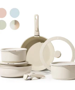 You Won’t Compromise on Quality: Balanced convenience-rich features, rapid&even heat transfer, and nonstick performance as the same as other cookware sets.