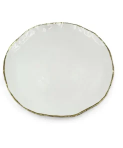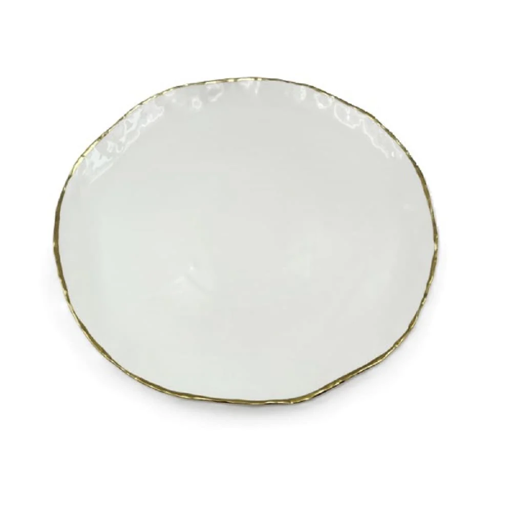 Elevate your dining experience with the Simplicity Collection’s White Porcelain Gold Trim Freestyle Round Charger Plate. This elegant yet functional tray combines sleek, modern design with timeless charm, making it a perfect centerpiece for everyday dining, special gatherings, or parties. Crafted from high-quality Porcelain, it features a smooth white finish accented by luxurious gold trim, creating a sophisticated look that complements any table setting.The design provides ample space for serving appetizers, desserts, or side dishes, while its durable construction ensures long-lasting use. Whether hosting a family gathering or entertaining guests, this serving tray adds a touch of elegance and refinement to every occasion. Add this beautiful serving tray to your collection and make every meal a special memorable moment!