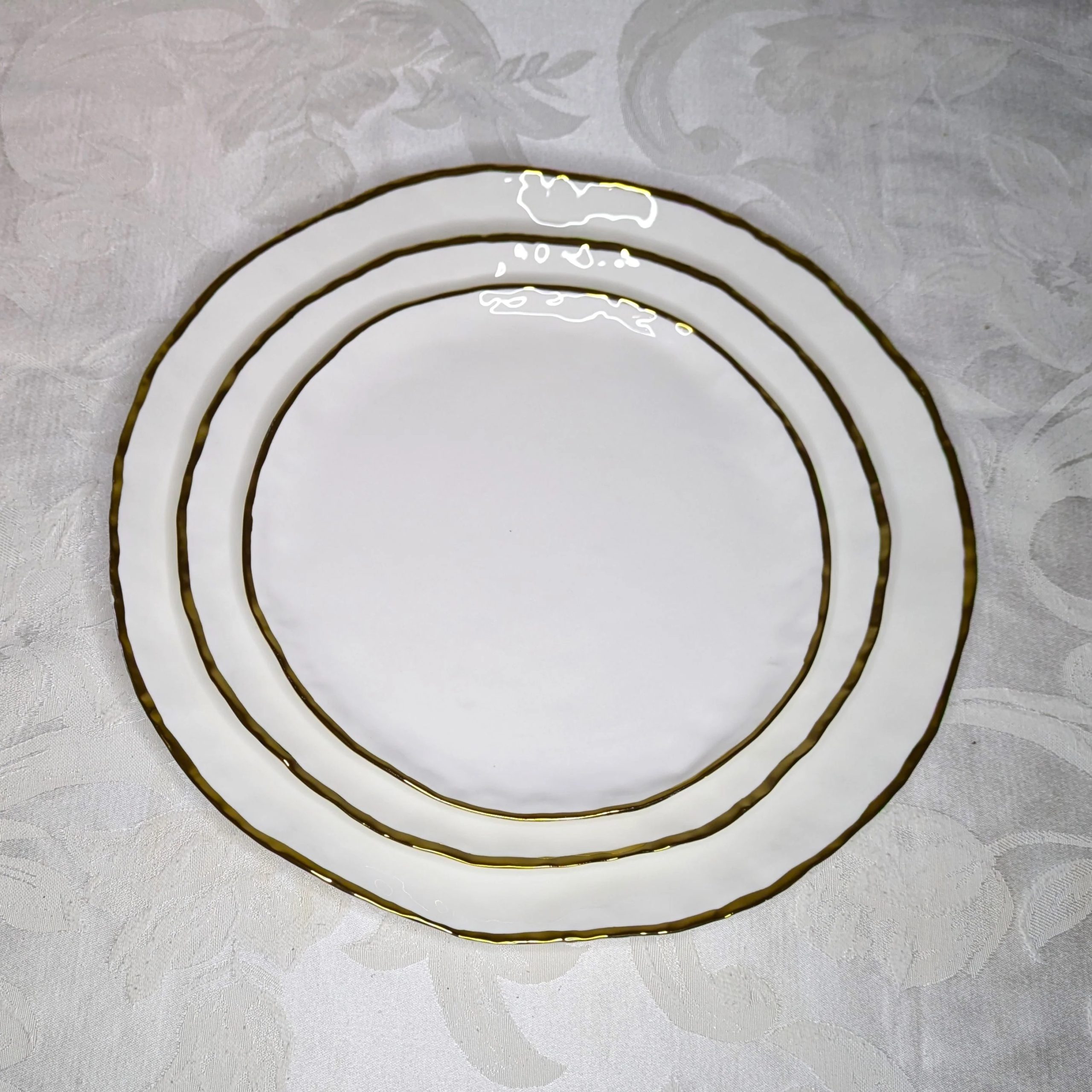 12.5" White Porcelain Gold Trim Freestyle Round Charger Plate