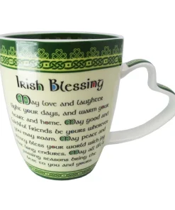 - The design of this cup is inspired by traditional Celtic artwork and features intricate spirals that add a stylish touch to any table setting. The Irish Blessing phrase is also prominently displayed, making it a meaningful and thoughtful gift.