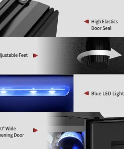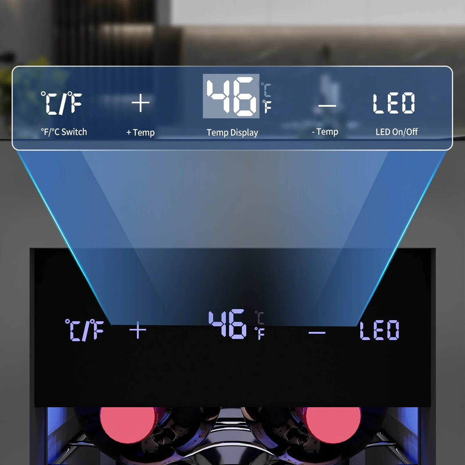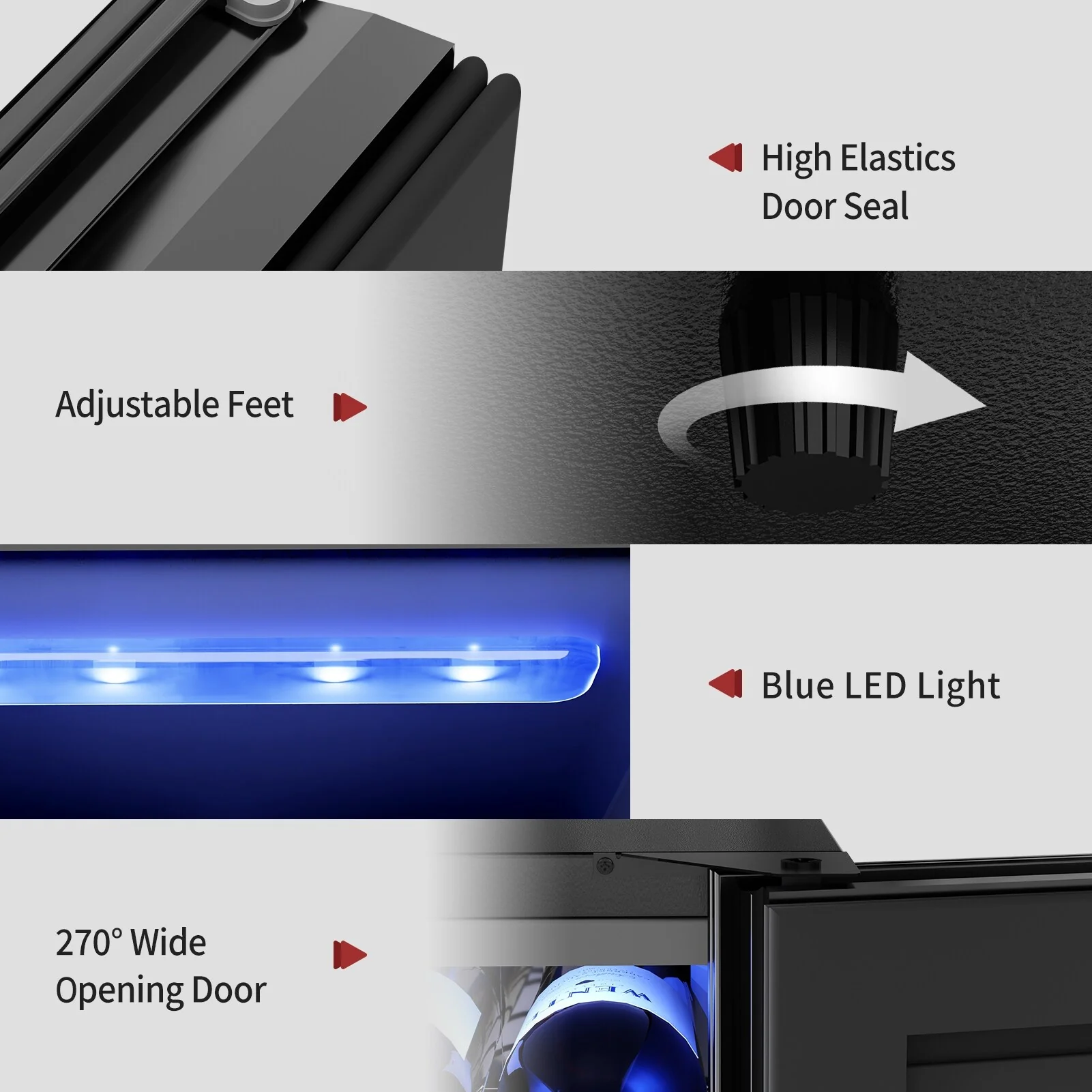 Blue LED Light and 270° Wide Opening Door: The blue LED light softly illuminates the wine bottles, and the wide – opening door allows for easy access.