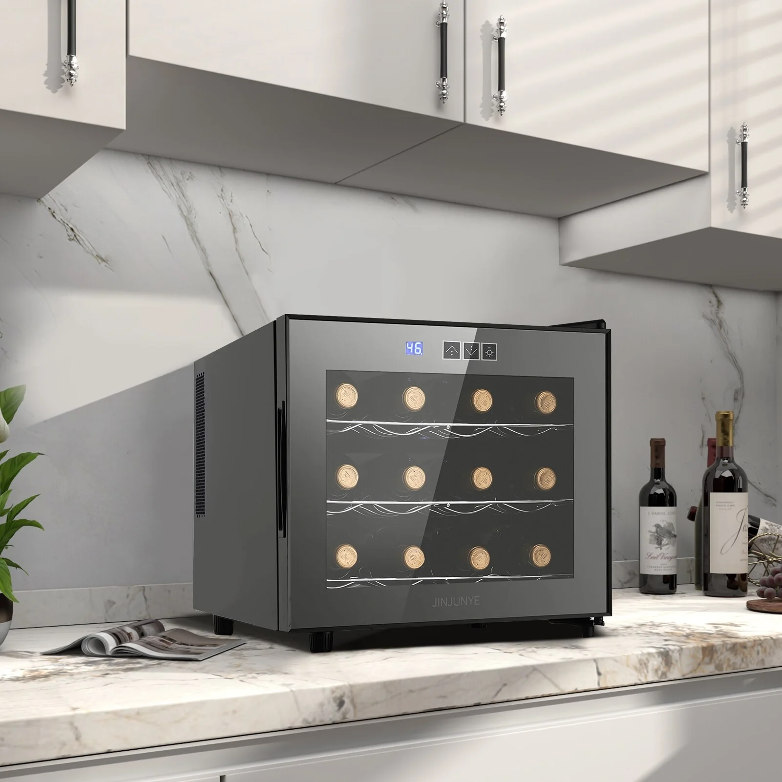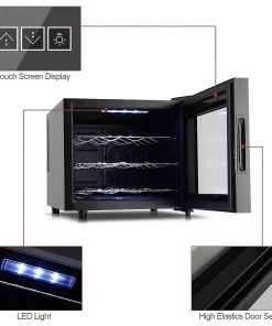 With its compact size, this wine cooler is perfect for small spaces, such as countertops, small kitchens, or even apartments. It can hold up to 12 standard wine bottles, providing ample storage for your favorite wines.