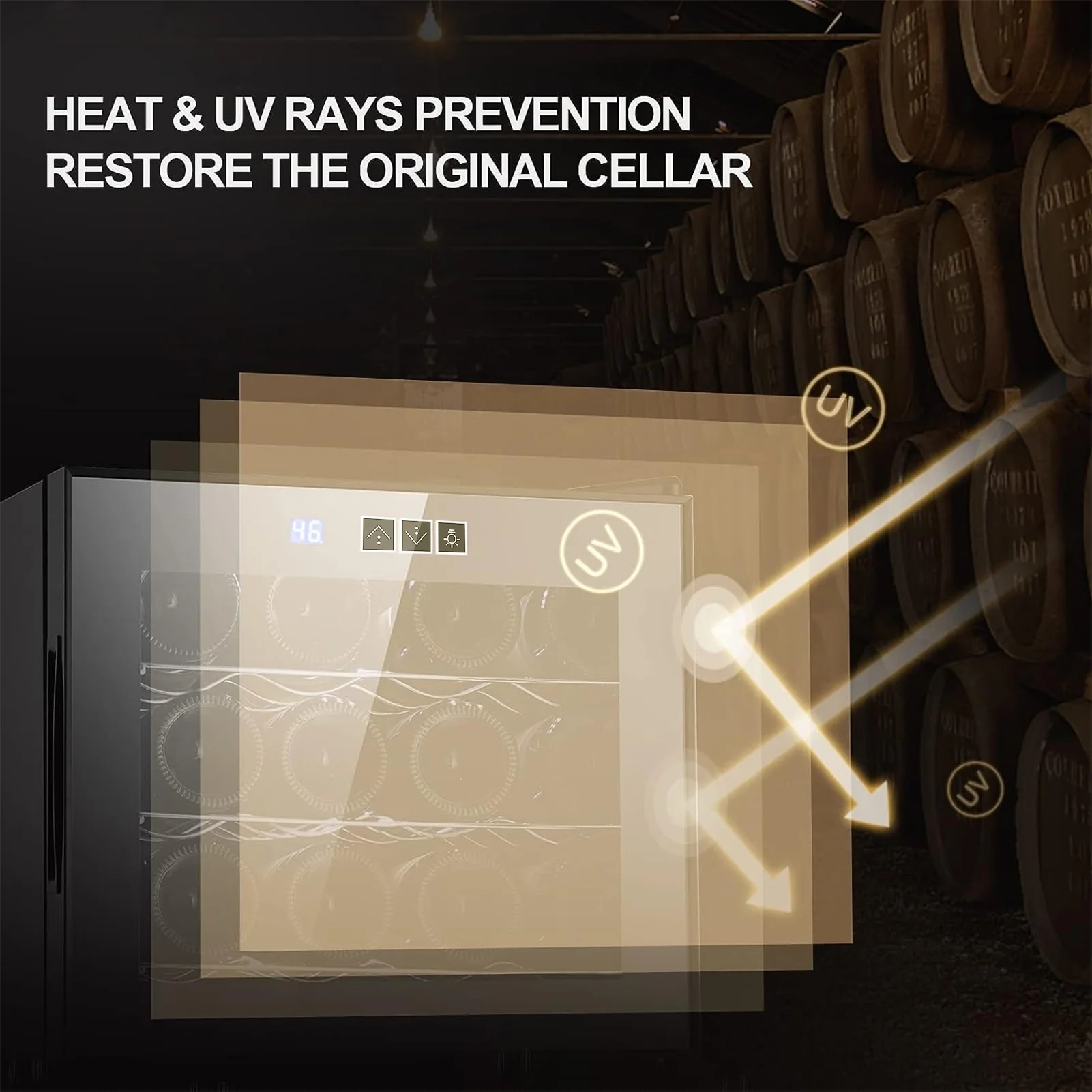 LED Interior Lighting: Soft LED lights illuminate the interior, allowing you to view your wine collection without harsh lighting that could potentially damage the wine.