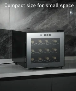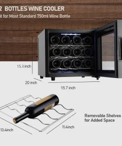 The 12 – bottle wine cooler is a sophisticated appliance designed to meet the needs of wine enthusiasts. Its sleek, modern design with a black finish and glass door makes it a stylish addition to any kitchen, living room, or entertainment area.
