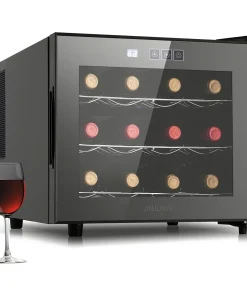 The 12 – bottle wine cooler is a sophisticated appliance designed to meet the needs of wine enthusiasts. Its sleek, modern design with a black finish and glass door makes it a stylish addition to any kitchen, living room, or entertainment area.