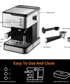 20 BAR POPULATION SYSTEM – 20 Bar high-pressure pump provides the right amount of pressure for flavor extraction.Intrigued a small amount of nearly boiled water through finely ground coffee to make true espresso