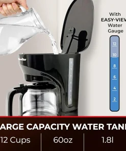 12-Cup Drip Coffee Maker with Borosilicate Carafe, Auto-Off, Reusable Filter, Anti-Drip, Keep-Warm