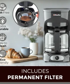 Generous Capacity & Durable Design: Glass carafe with 60oz capacity, this allows you to brew a large amount of coffee up to 12 full cups, or simply choose 2 or 4 at a time. It has an easy-grip handle for comfortable, drip-free pouring. The dishwasher safe carafe coffee pot is made of high-quality, non-porous borosilicate glass, which won’t absorb odors, while its superb heat-resistance will keep your coffee hotter for Ionger. Reusable Eco-Filter: Our permanent filter technology not only enriches the flavor of your coffee but also saves you the cost and waste of disposable filters. Easy to remove and clean, however filter paper can still be used if you prefer. Savor the flavor in every refill. Improved Keep Warm Safety: Our keep-warm function maintains your coffee’s temperature, ensuring your last cup is as warm as the first. After your machine has brewed a fresh carafe of coffee, the warming plate will retain heat, and then will automatically turn off after 2 hours. Perfect for busy mornings or leisurely brunches. Thoughtful Features: This coffee machine comes with a non-drip carafe and non-slip feet for stability, ensuring your brewing experience is clean and safe. Superior Quality – We are here to offer you only the best quality products designed to make your life easier. If you need any help, please feel free to contact us.