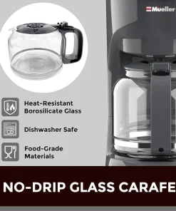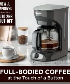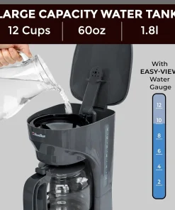 12-Cup Gray Drip Coffee Maker, Borosilicate Carafe, Auto-Off, Reusable Filter, Keep-Warm Function