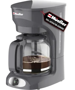 12-Cup Gray Drip Coffee Maker, Borosilicate Carafe, Auto-Off, Reusable Filter, Keep-Warm Function