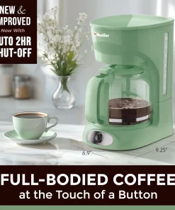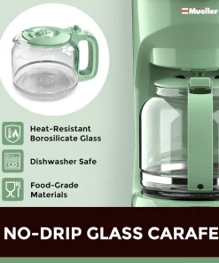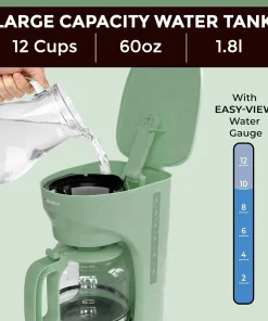 12-Cup Green Drip Coffee Maker, Borosilicate Carafe, Auto-Off, Reusable Filter, Anti-Drip Design