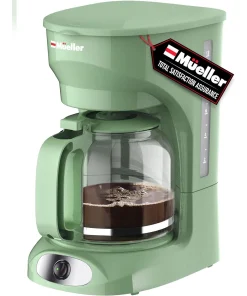 12-Cup Green Drip Coffee Maker, Borosilicate Carafe, Auto-Off, Reusable Filter, Anti-Drip Design