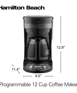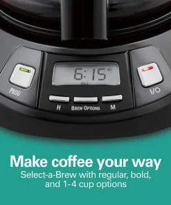 12 Cup Programmable Drip Coffee Maker with 3 Brew Options, Glass Carafe, Auto Pause and Pour, Black Stainless (46293)