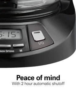 AUTOMATIC SHUTOFF — The drip coffee maker automatically turns off after 2 hours for peace of mind.
