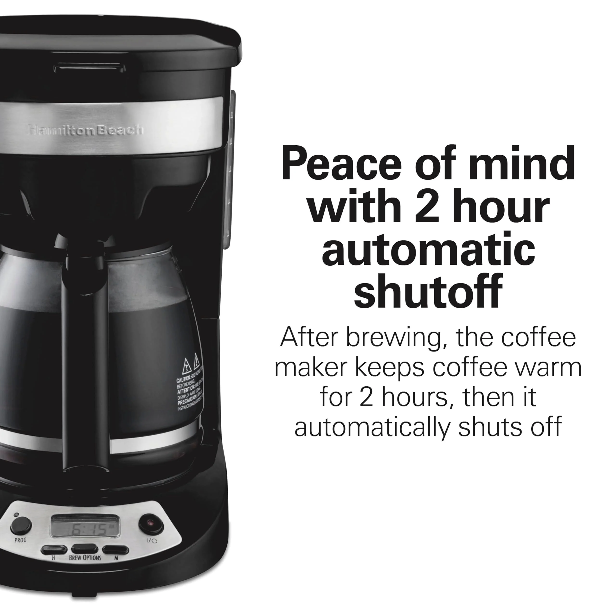 2 HOUR AUTOMATIC SHUTOFF FOR PEACE OF MIND: The programmable coffee maker automatically turns off after 2 hours so you don’t have to worry about whether or not you’ve left it on.