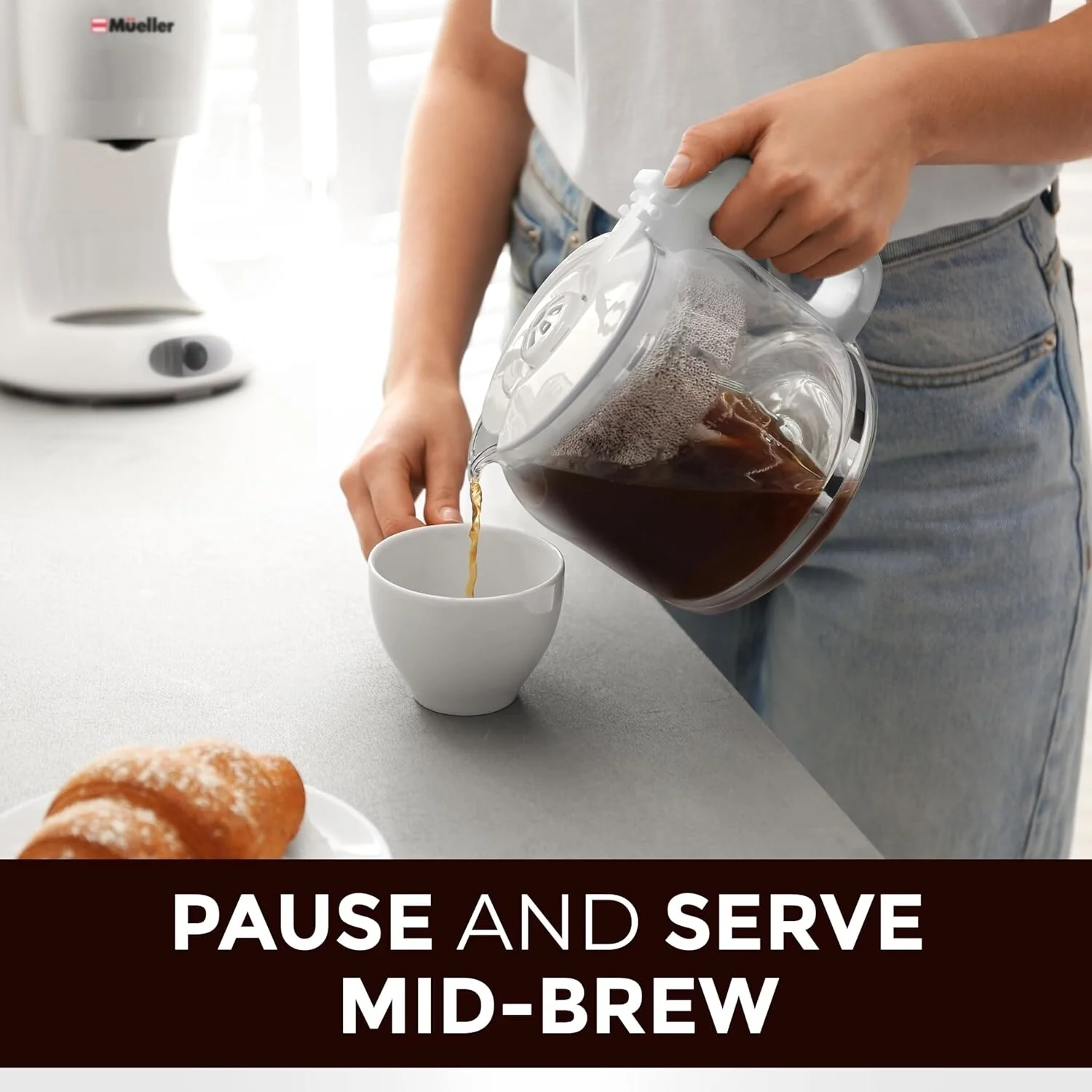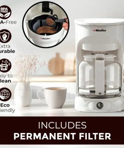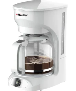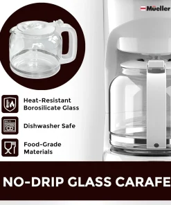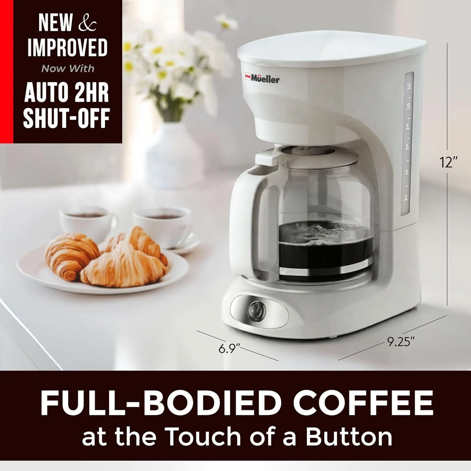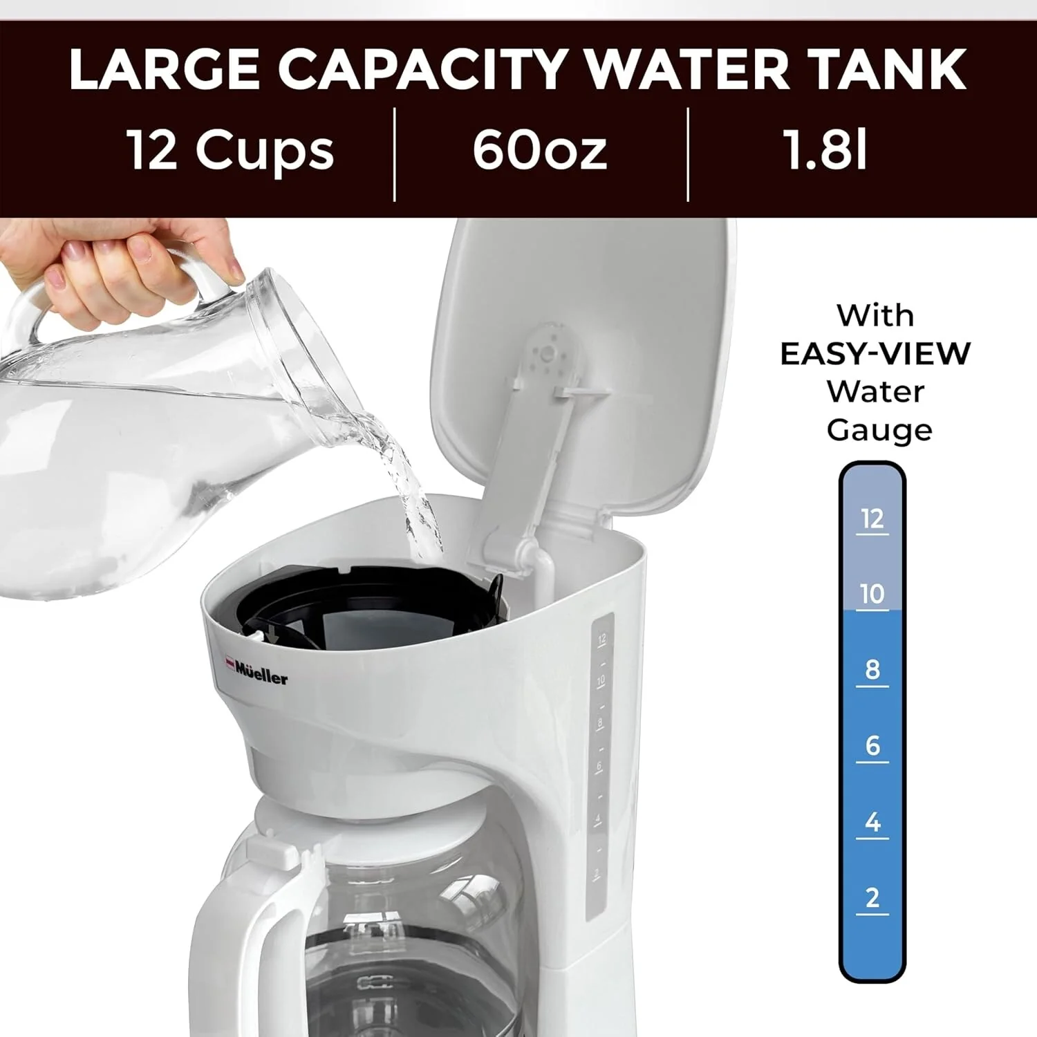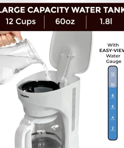 12-Cup White Coffee Maker with Borosilicate Carafe, Auto-Off, Reusable Filter, Clear Water Window
