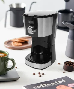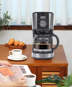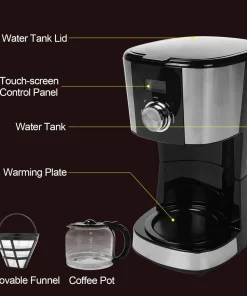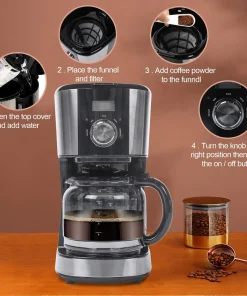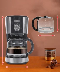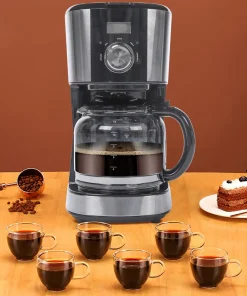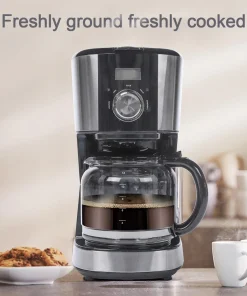 Features:【24-Hour Programmable Delay Brew】— You can wake up everyday to the smell of freshly brewed coffee and a any other time of the day you like. The digital clock with a fully automatic 24-hour programmable timer on this coffee machine is easy to set up and allows you to prepare your brew in advance.【Permanent Coffee Filter and Easy-View Water Window】—The water reservoir is easy to fill and equips with a water window which offers visibility as the tank is filled. The built-in coffee filtration saves money as there is no need for paper filters. Best of all, the accessories including the coffee filter basket, filter holder, and coffee pot are dishwasher safe.【 30s prevent-drip Function and Easy Brew】— The prevent drip function allows the coffee to stop brewing for 30 seconds after the coffee pot has been removed. So now you can enjoy a cup of coffee before the whole batch has been brewed. Special carafe design ensures drip free and your coffee down to the last drop.No more dripping or mess on your countertops.【Easy to Use with Unique Rotary Switch】—Instead of Traditional Push Button,our coffee maker do unique rotary switch settings, which is quite modern, perfect design, the stainless steel body, and advanced technology,You will love it at first sight,and it also can be the good choice to send your families or friends as a gift.【The Best Tasting Coffee 】— Brew a full pot of coffee using your favorite grounds and with brew strength control you can select regular or bold coffee flavor, whatever you like better.The 12 Cups capacity of this coffee machine allows you to share delicious hot coffee with your family and friends any time.Specification:Colour:BlackPower: 900WVoltage: 120V/60HzMaterial: PP glass SUS304 silliconeProduct Dimension: 275*184*351mmNet Weight: 1.8kgPackage Weight: 2.3kgPackage Contents:1pcsx COFFEE MAKER1x manual2xcards