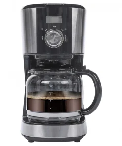 Features:【24-Hour Programmable Delay Brew】— You can wake up everyday to the smell of freshly brewed coffee and a any other time of the day you like. The digital clock with a fully automatic 24-hour programmable timer on this coffee machine is easy to set up and allows you to prepare your brew in advance.【Permanent Coffee Filter and Easy-View Water Window】—The water reservoir is easy to fill and equips with a water window which offers visibility as the tank is filled. The built-in coffee filtration saves money as there is no need for paper filters. Best of all, the accessories including the coffee filter basket, filter holder, and coffee pot are dishwasher safe.【 30s prevent-drip Function and Easy Brew】— The prevent drip function allows the coffee to stop brewing for 30 seconds after the coffee pot has been removed. So now you can enjoy a cup of coffee before the whole batch has been brewed. Special carafe design ensures drip free and your coffee down to the last drop.No more dripping or mess on your countertops.【Easy to Use with Unique Rotary Switch】—Instead of Traditional Push Button,our coffee maker do unique rotary switch settings, which is quite modern, perfect design, the stainless steel body, and advanced technology,You will love it at first sight,and it also can be the good choice to send your families or friends as a gift.【The Best Tasting Coffee 】— Brew a full pot of coffee using your favorite grounds and with brew strength control you can select regular or bold coffee flavor, whatever you like better.The 12 Cups capacity of this coffee machine allows you to share delicious hot coffee with your family and friends any time.Specification:Colour:BlackPower: 900WVoltage: 120V/60HzMaterial: PP glass SUS304 silliconeProduct Dimension: 275*184*351mmNet Weight: 1.8kgPackage Weight: 2.3kgPackage Contents:1pcsx COFFEE MAKER1x manual2xcards