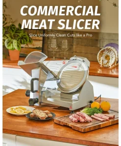 *Excellent Performance: This meat slicer is constructed with a cast aluminum body, rust-proof, corrosion-proof, and easy cleaning. The 12-inch diameter chromium-plated steel blade with a sharp edge is designed for quick slicing.