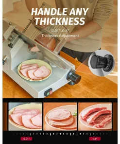 *Precise Adjustable Thickness: Our electric deli food slicer is equipped with a thickness-adjustable knob and you can easily adjust the slice thickness from 0mm to 16mm (0-0.6 inch) precisely. Get different types of food slices with the specific thickness you want.