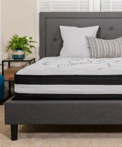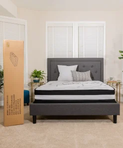 A restful nights sleep is the key to great mornings and focused, energetic days and a great mattress makes all the difference. Lay yourself down on the soft knitted fabric covering of this bed mattress filled with premium high-density foam overlaying the medium-firm pocket spring core. This foam and innerspring mattress is constructed with ultra-supportive material that cradles your body in every position, keeping your back, neck and shoulders comfortable to provide the restful sleep you and your family need. The foam is CertiPUR-US Certified so it’s free from heavy metals, phthalates, BPDE, formaldehyde and has reduced VOCs so you can rest easy knowing your indoor air quality won’t be compromised.Purchasing the right mattress may help make body aches and wakeful nights a thing of the past. Our medium-firm mattress features individually wrapped pocket spring coils that reduce motion transfer to help you stay asleep while minimizing pressure points to reduce or eliminate joint and back pain. Pocket springs provide support by filling in the gaps of your sleeping form while allowing airflow through the mattress, creating a cooler sleeping surface. This foam and pocket spring mattress is compatible with trundle beds, platform beds and adjustable bed frames, when using with a standard bed frame a box spring or other foundation is required. Arriving compressed and packaged for your convenience, This bed in a box is easy to move wherever you need it. The top-quality construction of this high-density foam mattress ensures long-lasting use and its integrated handles make transportation effortless. Perfect for your first house or apartment, this size bed mattress achieves the ideal blend of comfort, support and durability that will definitely upgrade your sleeping experience.